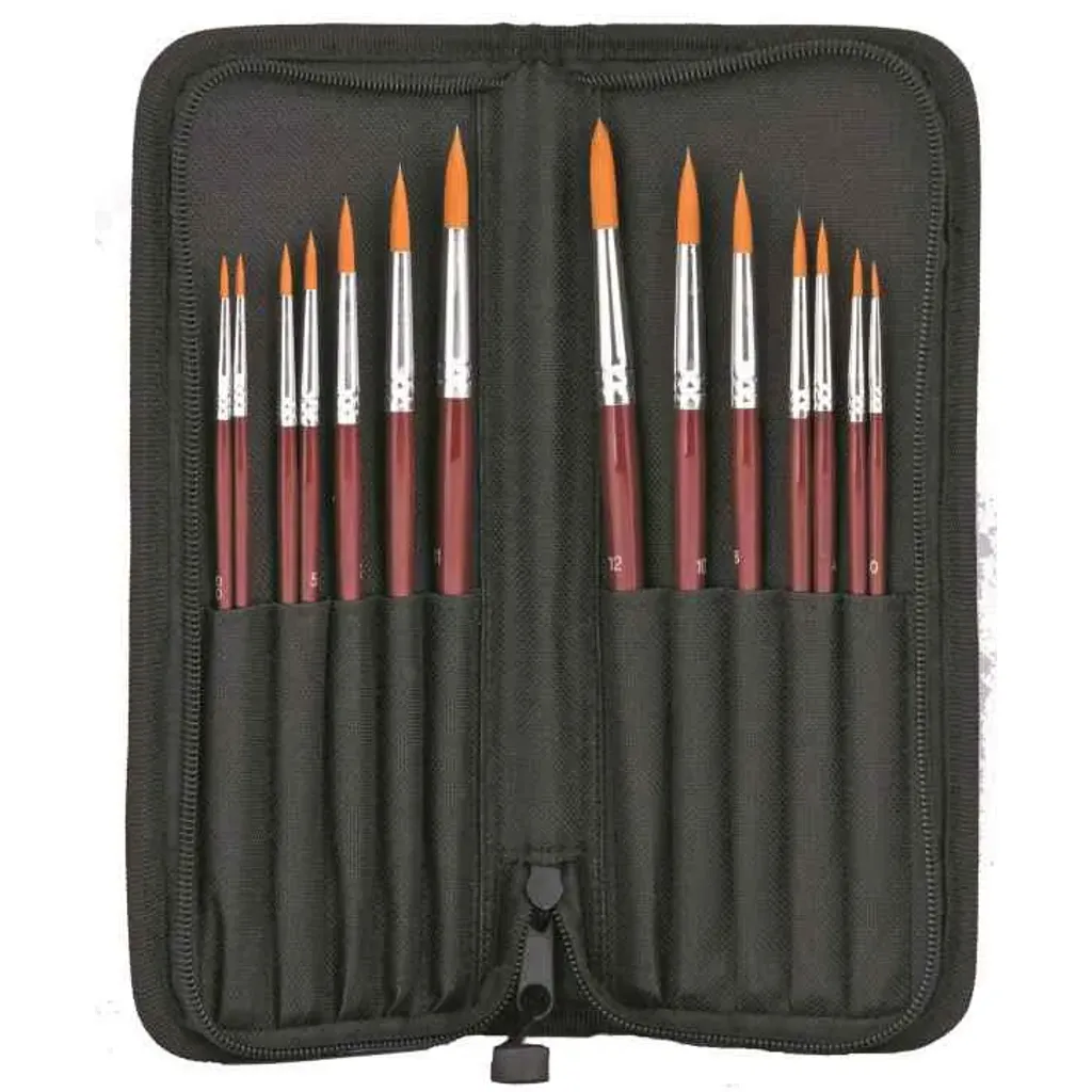 Waltons Primeline Paint Brushes in Polyester Zip Case Deluxe Taklon Set of 14