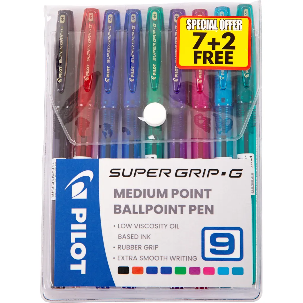Pilot Supergrip-G Ballpoint Pen Set of 7 + 2